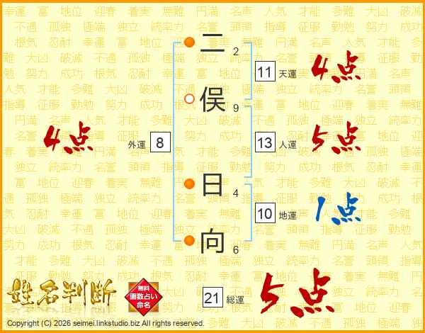 二俣日向さんの総運は21画の5点!