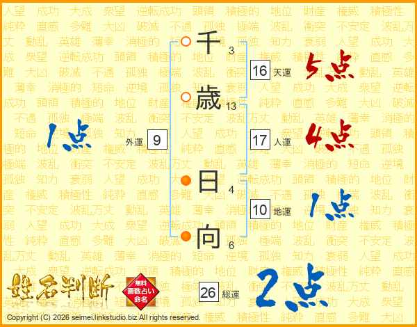 千歳日向さんの総運は26画の2点!