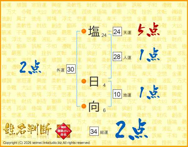 塩日向さんの総運は34画の2点!