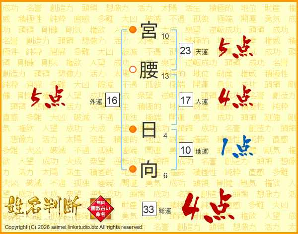 宮腰日向さんの総運は33画の4点!