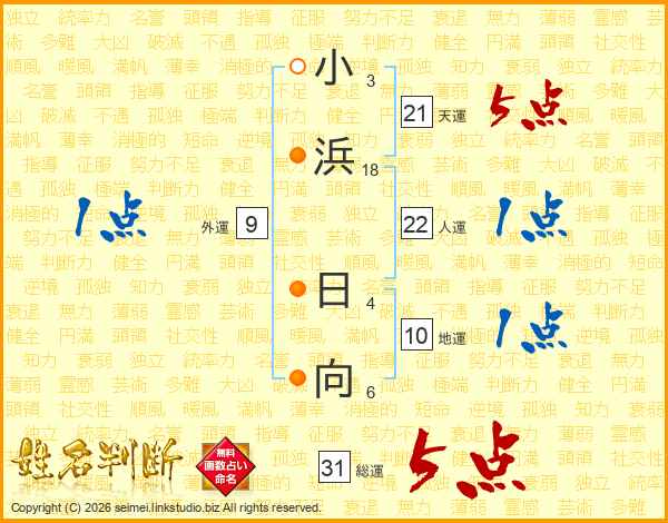 小浜日向さんの総運は31画の5点!