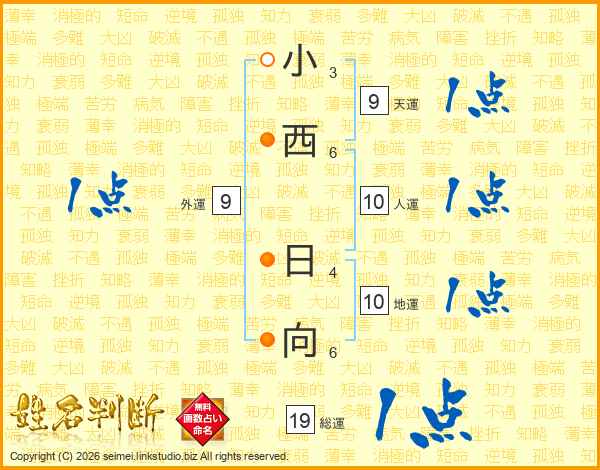 小西日向さんの総運は19画の1点!