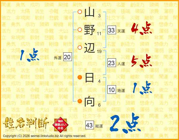 山野辺日向さんの総運は43画の2点!