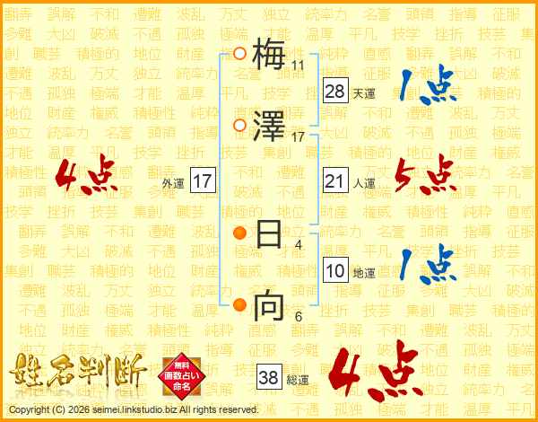 梅澤日向さんの総運は38画の4点!
