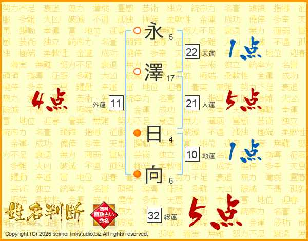 永澤日向さんの総運は32画の5点!