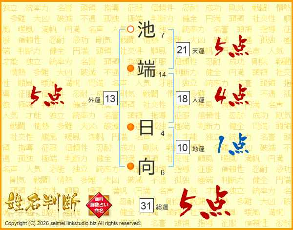 池端日向さんの総運は31画の5点!