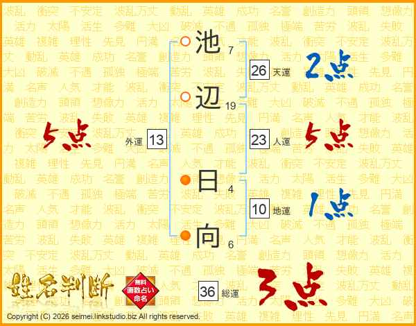 池辺日向さんの天運は26画の2点!