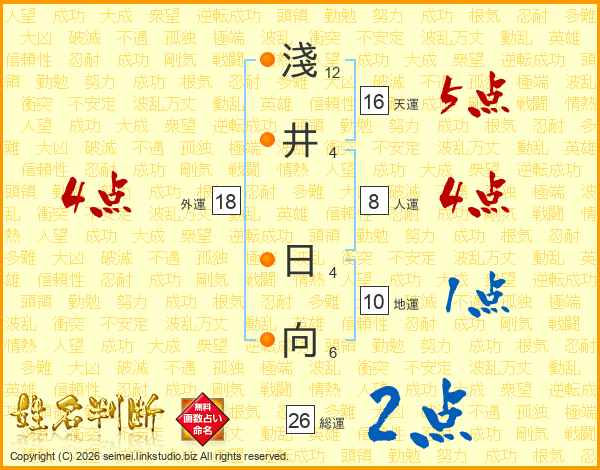 淺井日向さんの総運は26画の2点!