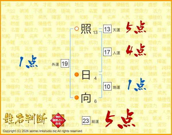照日向さんの総運は23画の5点!