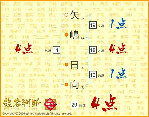 矢嶋日向さんの総運は29画の4点!