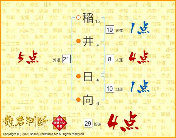 稲井日向さんの総運は29画の4点!