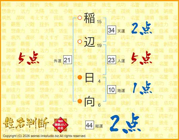 稲辺日向さんの総運は44画の2点!