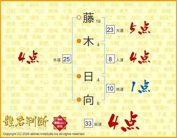 藤木日向さんの総運は33画の4点!