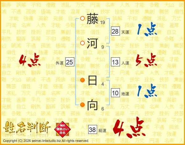 藤河日向さんの総運は38画の4点!
