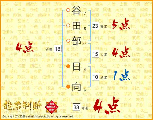 谷田部日向さんの総運は33画の4点!