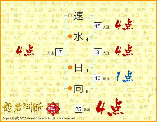 速水日向さんの外運は17画の4点!