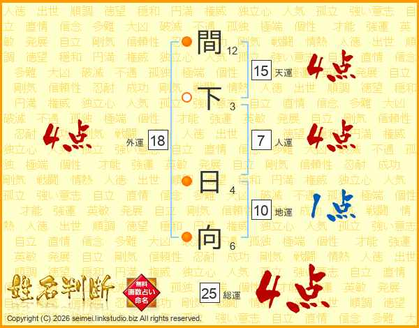 間下日向さんの総運は25画の4点!