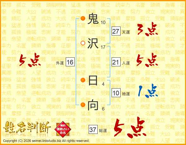 鬼沢日向さんの総運は37画の5点!