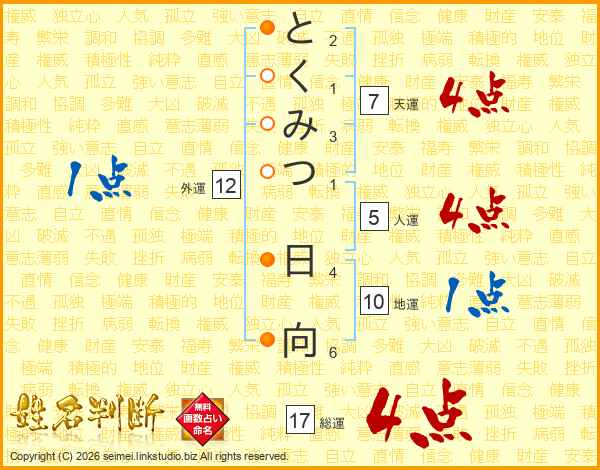 とくみつ日向さんの総運は17画の4点!