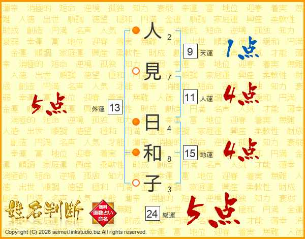 人(2画)見(7画) 日(4画)和(8画)子(3画)