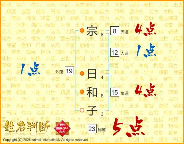 宗(8画) 日(4画)和(8画)子(3画)