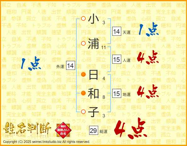 小(3画)浦(11画) 日(4画)和(8画)子(3画)