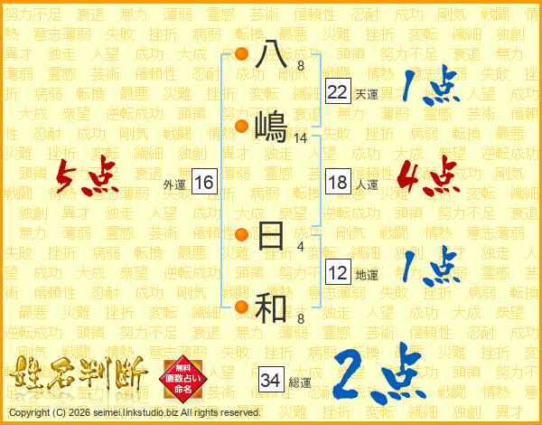 八(8画)嶋(14画) 日(4画)和(8画)