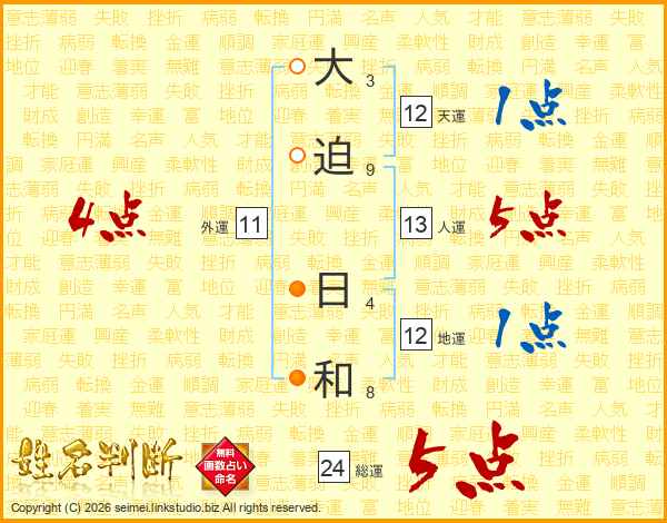 大迫日和さんの総運は24画の5点!