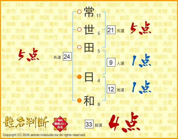 常(11画)世(5画)田(5画) 日(4画)和(8画)