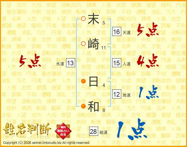 末崎日和さんの総運は28画の1点!