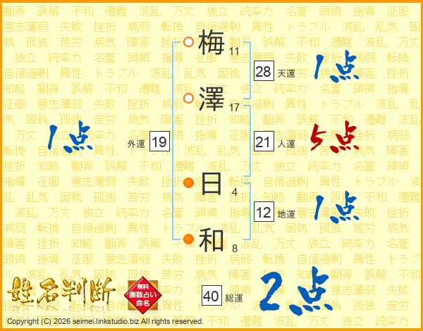 梅(11画)澤(17画) 日(4画)和(8画)