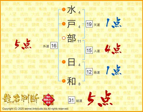 水戸部日和さんの総運は31画の5点!