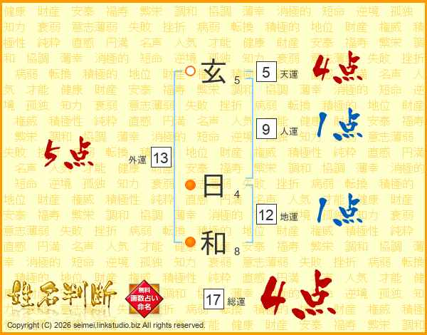 玄日和さんの総運は17画の4点!