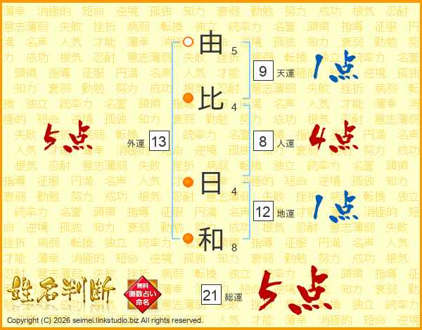 由比日和さんの総運は21画の5点!