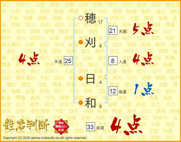 穂刈日和さんの総運は33画の4点!
