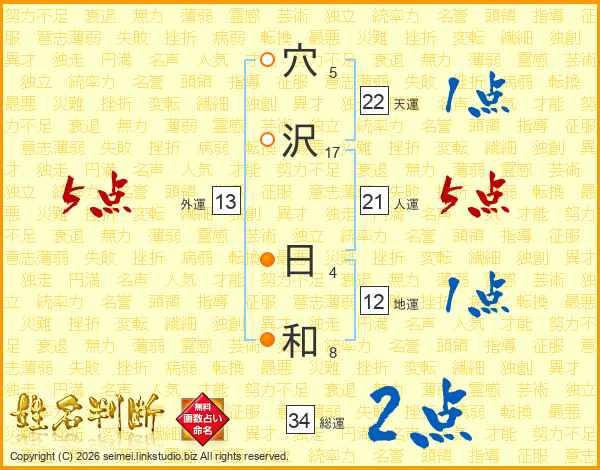 穴沢日和さんの外運は13画の5点!