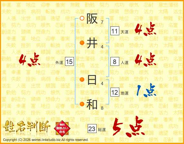 阪(7画)井(4画) 日(4画)和(8画)