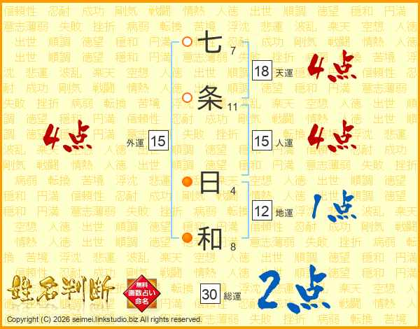 七条日和さんの天運は18画の4点!