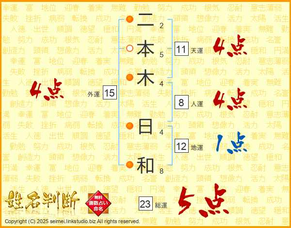 二本木日和さんの総運は23画の5点!