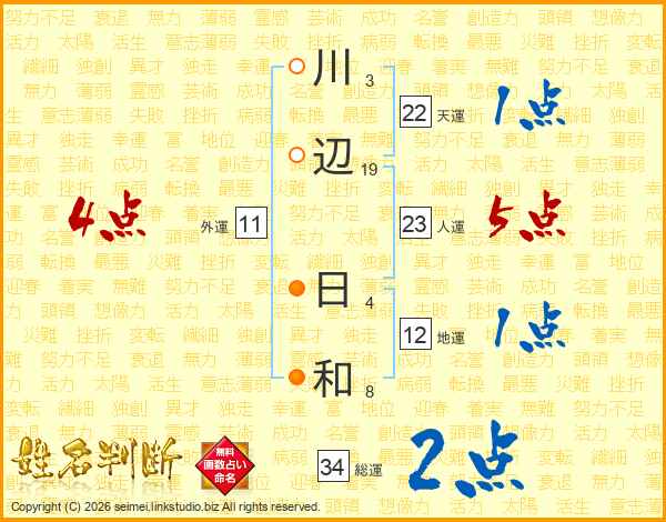 川(3画)辺(19画) 日(4画)和(8画)