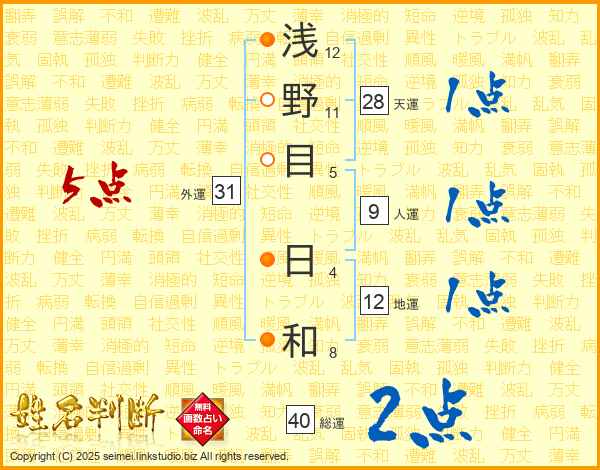 浅(12画)野(11画)目(5画) 日(4画)和(8画)
