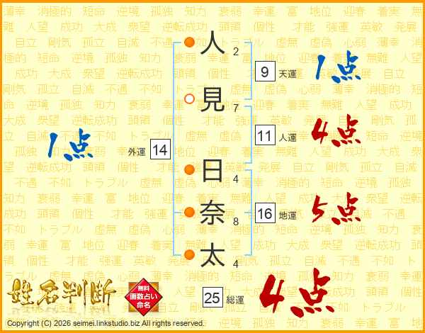 人見日奈太さんの総運は25画の4点!