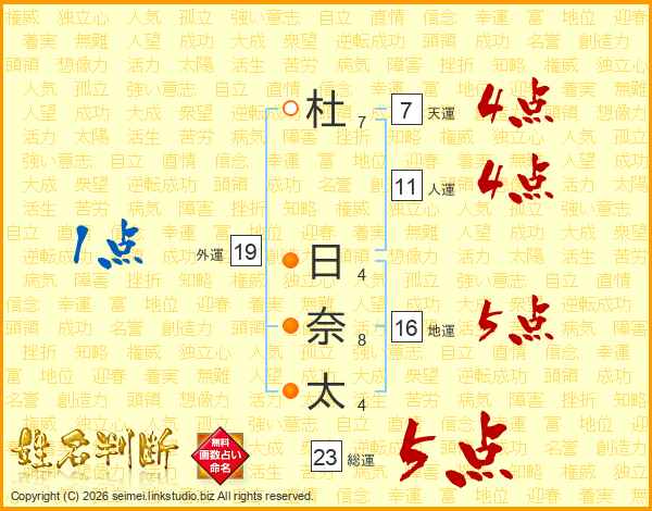 杜日奈太さんの総運は23画の5点!