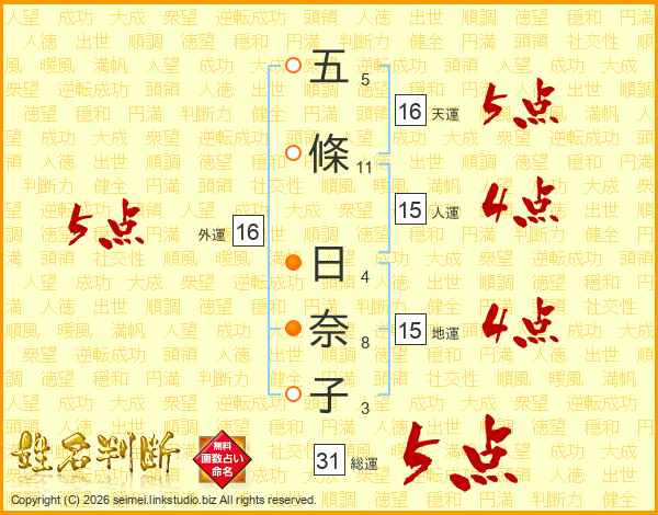 五條日奈子さんの総運は31画の5点!