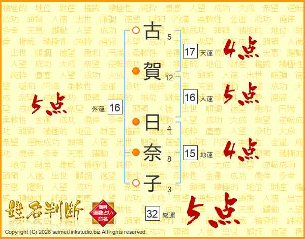 古賀日奈子さんの総運は32画の5点!