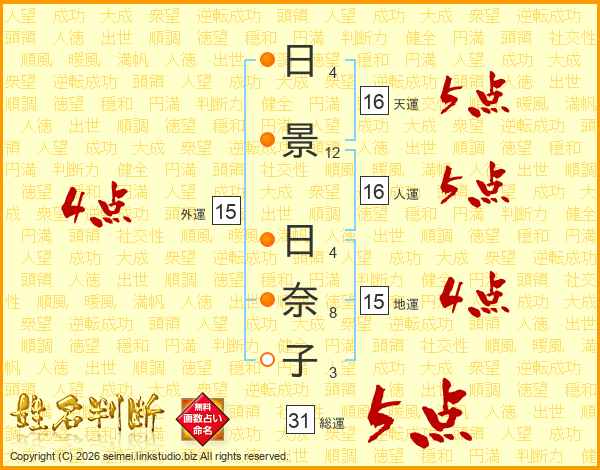 日景日奈子さんの総運は31画の5点!