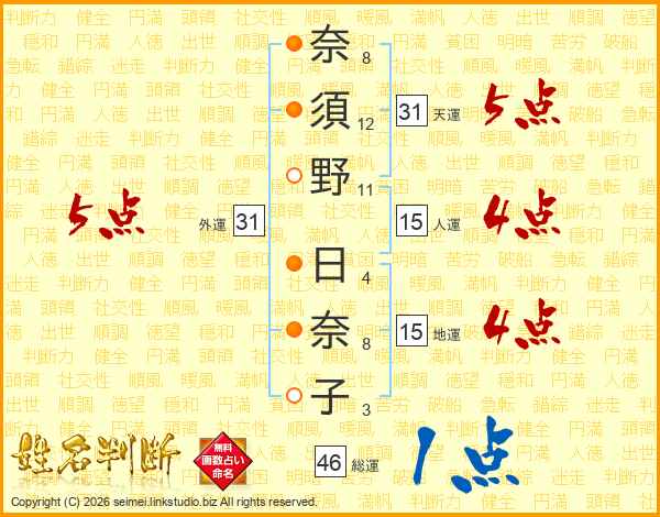 奈須野日奈子さんの外運は31画の5点!