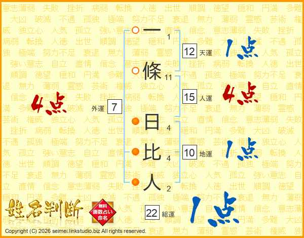 一條日比人さんの総運は22画の1点!