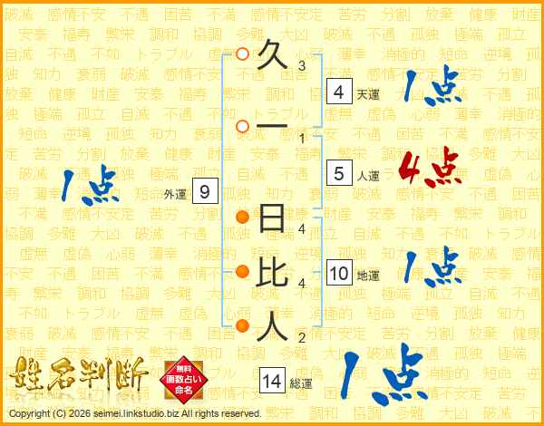 久(3画)一(1画) 日(4画)比(4画)人(2画)