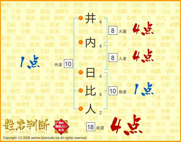 井内日比人さんの総運は18画の4点!